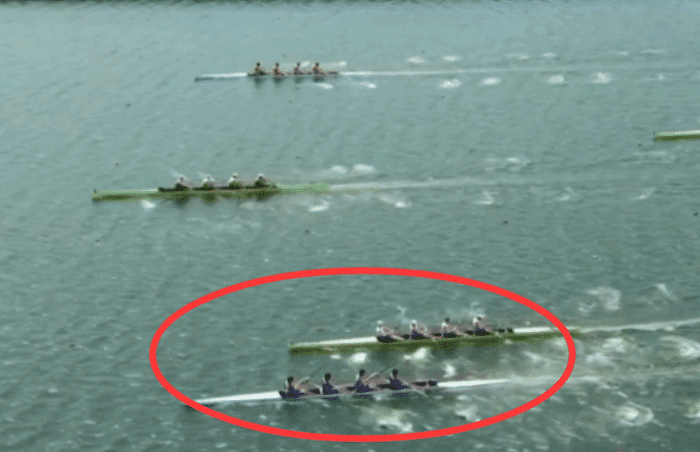 比赛的前1500米的时候,英国队本来还可以争一块奖牌,但是到了最后的冲击阶段,英国组合的赛艇串道冲向了意大利赛艇,这对于意大利赛艇也是产生了影响,英国队串道对意大利队造成影响,但没有被判犯规,5分45秒78获得第四名,有网友更是调侃道:你不要过来啊!!!这是要报欧洲杯之仇。