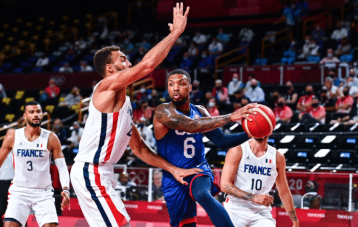 来源:24直播网07-26 10:0624直播网讯 7月25日,美国男篮正式亮相奥运会的赛场,没想到的是在首战遇到戈贝尔领衔的法国队,美国男篮梦之队以76-83遗憾败北。这场比赛上半场的美国男篮一直占据领先优势,无奈的是在下半场没有顶住戈贝尔和富尼耶的冲击,被对手逆转。最后时刻杜兰特等人的反超三分球连续投丢,而法国队这边稳扎稳打,还抢断了利拉德造成对手违体,比赛直接失去悬念。美国男篮吃到了2004年半决赛迎来的第一场奥运会失利,同时奥运25连胜被法国队终结了。