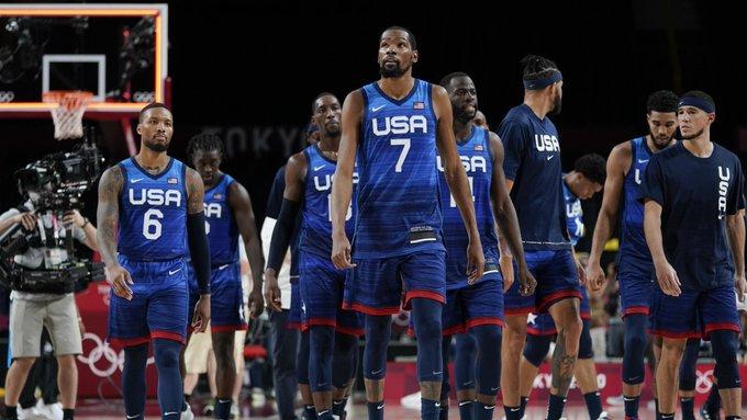 美国男篮输球后,全队都十分沮丧,低着头走回更衣室;此战美国男篮头牌杜兰特12投仅4中拿到10分,关键时刻连续投丢续命三分,五犯提前下场后他一脸无奈和落寞表情。