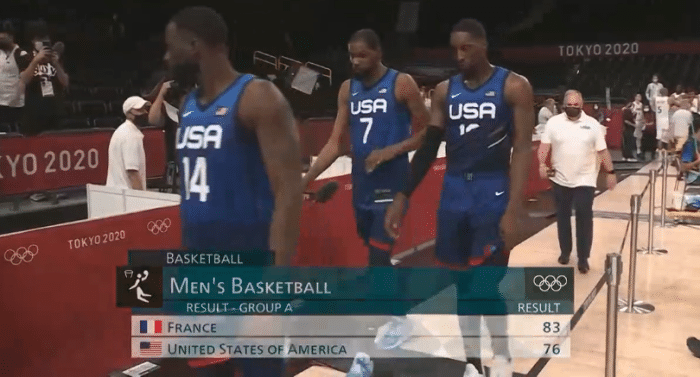 来源:24直播网07-26 10:0024直播网讯 北京时间7月25日,美国男篮东京奥运首战不敌法国,第三节11-25狂输14分被翻盘,末节一度再次领先,可关键时刻美国男篮集体掉链子,最后1分钟杜兰特、霍勒迪和拉文共计投丢四记续命三分,利拉德滑倒失误还赔上违体犯规,美国男篮遭遇耻辱一战。
