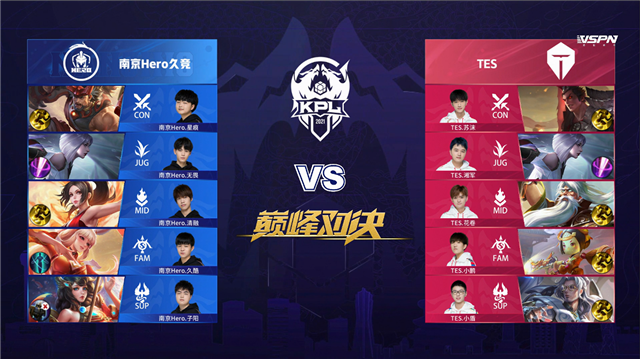 46秒墨子击杀东皇太一拿下一血,2分24秒南京Hero关羽单杀曜。3分钟TES兰陵王击杀不知火舞,5分26秒TES拆掉南京Hero中路一塔。7分01秒团战TES打出1换2,7分36秒TES拆掉南京Hero中下路二塔。8分40秒团战TES打出0换2,10分钟TES拆掉南京Hero上路二塔,双方团战2换2,TES拆掉南京Hero中路高地。10分59秒南京Hero拿下暗影暴君,团战打出1换3。13分25秒上路团TES打出1换5团灭南京Hero久竞。14分钟TES带领中路兵线攻上水晶,南京Hero不知火舞复活无力防守,TES一波摧毁水晶,双方进入巅峰对决。