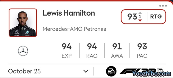新加坡大奖赛和日本大奖赛对于这位七次获得世界冠军的车手来说有些艰难。这位梅赛德斯车手在滨海湾赛道以强势的第三位发车,却第九个越过终点线,导致他的赛车技艺下降2分,整体评分下降1分。