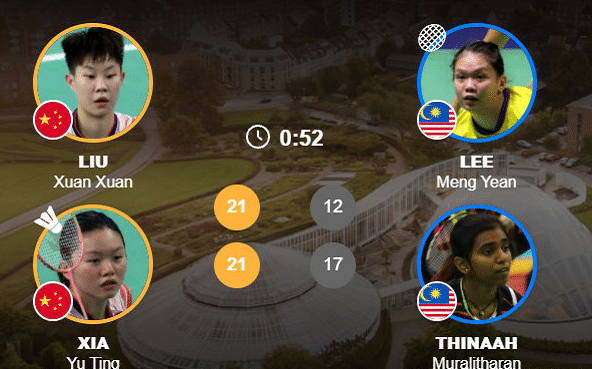 这场比赛玄炫刘和夏玉婷还是遇到了一些考验,首局她们以21-12轻松拿下。不过到了第二局,李明艳和蒂娜一度给中国组合带来困难,双方也进行鏖战,不过到了后期,玄炫刘和夏玉婷还是顶住了压力,以21-17拿下,总分2-0取得胜利。