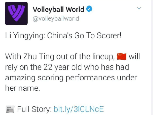中国女排出征,国际排联高度关注,社交媒体上盛赞李盈莹,称:“李盈莹—中国女排新的得分王!继朱婷之后,中国女排将依靠这位有着惊人得分的22岁小将!”