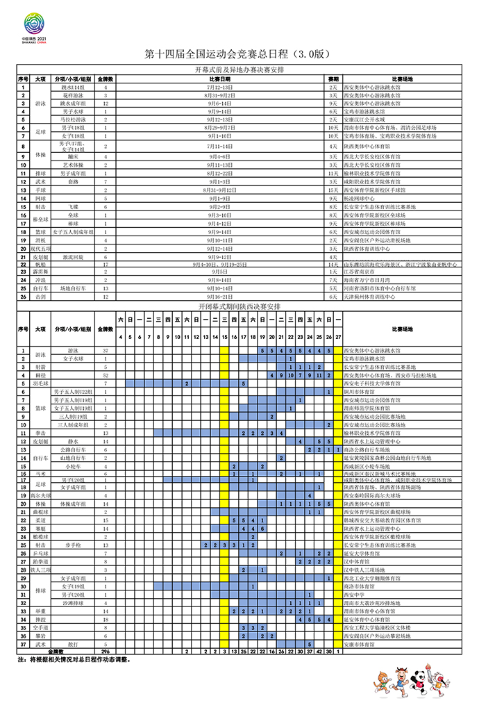 来源:24直播网09-05 16:1224直播网讯 9月15日,第十四届全运会将在陕西西安正式开幕,相信全国不少网友都非常期待这次的全运会,那么这次全运会所有运动项目赛程是如何安排的呢,接下来就随小编一起来了解一下吧。