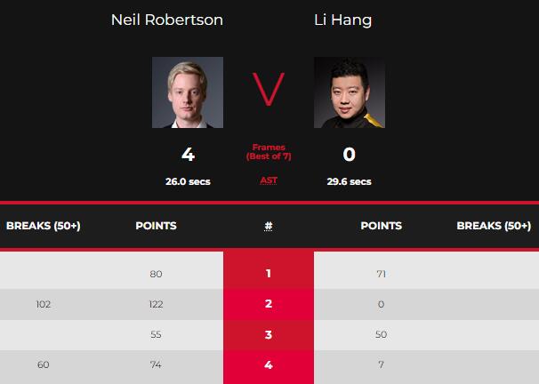 - 【录像】[优酷]北爱尔兰公开赛第4轮 尼尔-罗伯逊vs李行 全场录像2022-10-21 10:09:37