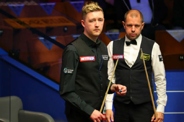 第9局,他打出单杆54分,以64-31先胜一局。第10局,霍金斯率先上手,但单杆55分后出现重大失误,K-威尔逊趁机上手,轰出单杆69分,以69-55实现单局逆转。第11局,K-威尔逊在1-10落后的情况下,抓住机会,轰出单杆92分,以93-10再胜一局。第12局,K-威尔逊再次打出单杆93分,以131-1又胜一局,大比分8-4领先进入局间休息。