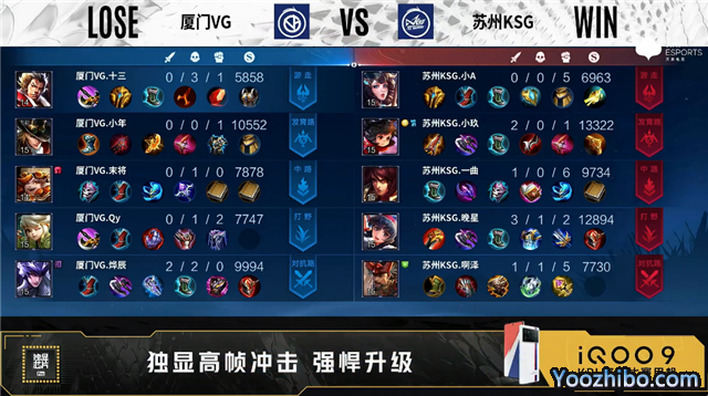 苏州KSG选用:廉颇、娜可露露、周瑜、李元芳、大乔