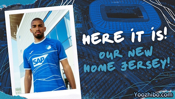 除了由白色和冰蓝色线条组合而成的精美图案外,新球衣的圆领以及袖口上加入白色条纹装饰,在蓝色球衣的衬托下更显突出。球衣胸前带有俱乐部徽章以及白色Joma Logo,与往常一样,背后衣领下方带有俱乐部口号“TSG IST BEWEGUNG”(TSG是一项运动)。