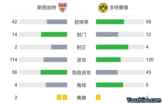 全场比赛结束,多特蒙德客场2-0战胜斯图加特。