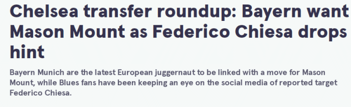 该媒体表示,芒特与切尔西的合同在2024年到期,他的身价约为6360万英镑。在被兰帕德提拔至一线队后,芒特的表现越来越出色,无论是在蓝军还是在英格兰代表队都能占据一席之地,考虑到他切尔西青训出身,拜仁想要得到他并不容易。