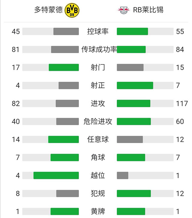 第62分钟,莱比锡扳回一城,福斯贝里开出右侧角球,禁区中路克洛斯特曼头球顶入球门左侧!多特2-1莱比锡!