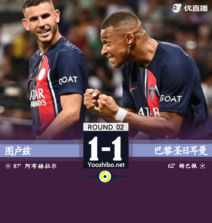 24直播网讯 北京时间8月20日凌晨3:00,2023-24赛季法甲联赛第2轮,巴黎圣日耳曼客战图卢兹。上半场阿什拉夫爆射造险,两队均无建树;下半场姆巴佩替补登场迎来本赛季首秀,上场后他制造点球,随后自己罚中,比赛尾声阶段阿什拉夫送点,阿布赫拉尔主罚命中,最终巴黎圣日耳曼1-1图卢兹,无缘本赛季首胜,联赛两连平。
