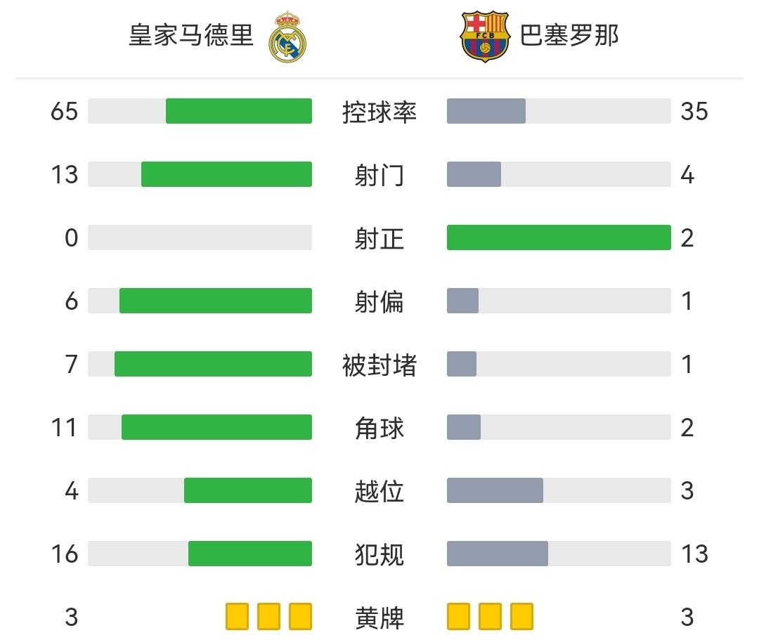 全场比赛结束,巴萨1-0击败皇马,占据先机。
