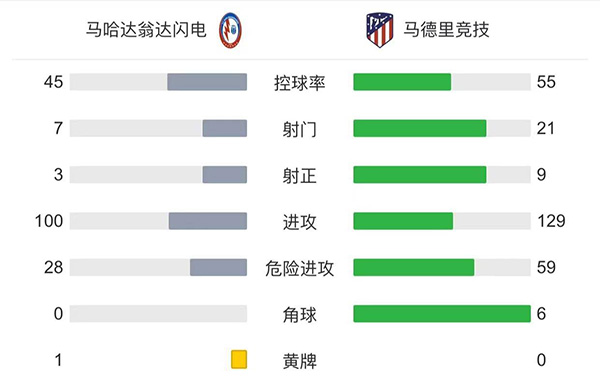 全场比赛结束,最终马竞客场5-0大胜马加达宏达。