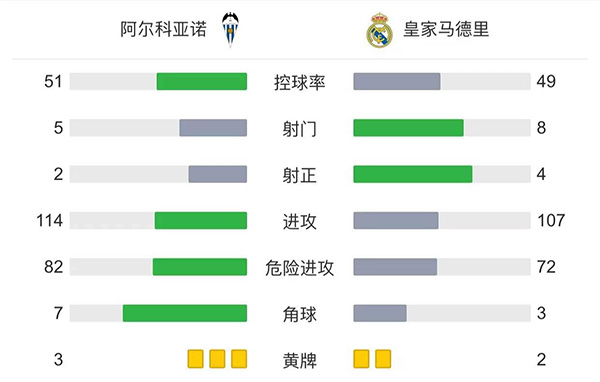 第66分钟,主队阿尔科亚诺扳平了比分!辛塔斯禁区内的抽射,扳平了比分!皇马1-1阿尔科亚诺!