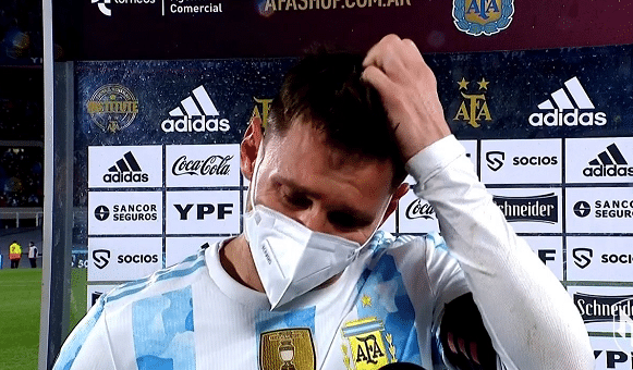 在接受采访的时候梅西哭了,他非常激动,称:“我真的很享受这个时刻,等待这个时刻等待了很久,回想到一路以来的经历,这是一个特别的时刻。没有比家人来到现场更好的庆祝时刻了,今天我的母亲、兄弟们都在看台上。我真的很高兴看到他们今天在这里。”