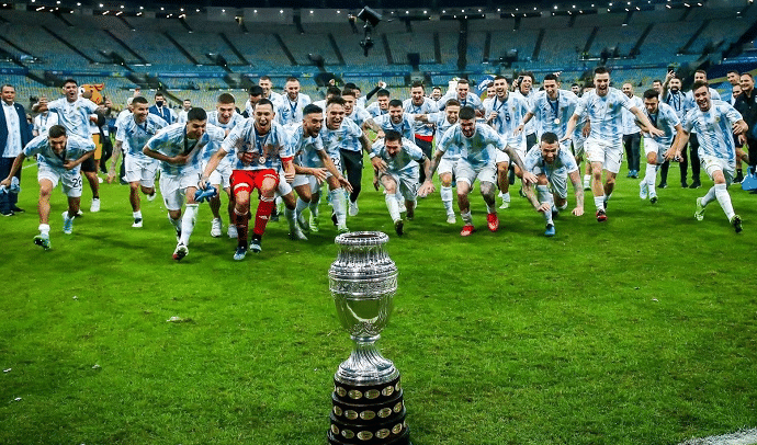比赛结束之后是阿根廷足协举行的庆祝美洲杯夺冠庆典,球员们拿出了在巴西斩获的美洲杯冠军,和球迷们一起庆祝,同时纪念碑球场的上空,放起了烟花,用这样的方式庆祝这座来之不易的美洲杯冠军。