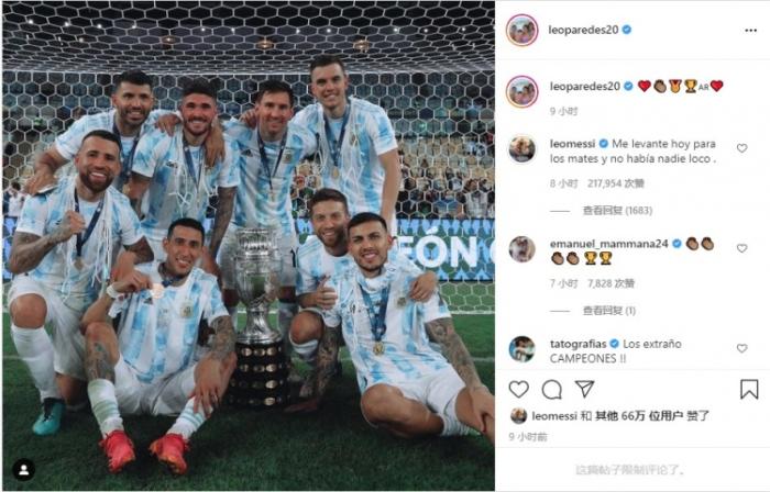来源:24直播网07-14 11:1324直播网讯 一份工作有多重要呢?拿到美洲杯后冠军后,梅西回到了阿根廷开始了自己的假期。7月13日一大早,梅西在帕雷德斯的社交媒体上评论,今天起来喝马黛茶连个人都没有。