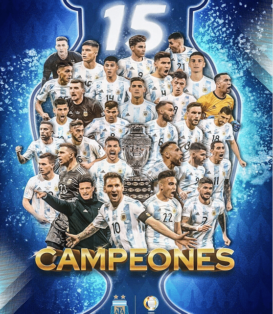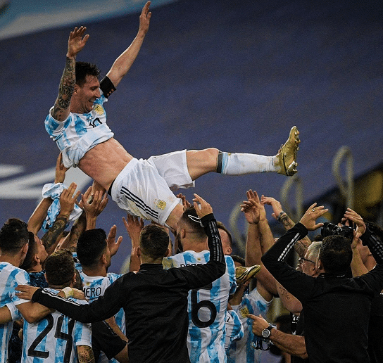 比赛结束之后梅西和球队一起高歌欢庆,梅西第一次成为美洲杯冠军,此前3次进入到决赛,全部都失利,这次梅西终于得偿所愿,斩获冠军。