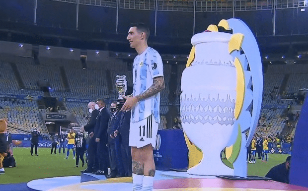 全场的高潮要说是捧杯时刻了,梅西作为阿根廷队队长先是领取个人荣誉,迪玛利亚领取决赛最佳球员的荣誉。