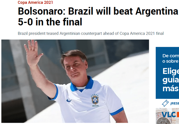 巴西总统:我们会在美洲杯决赛5-0赢阿根廷