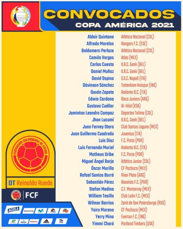 来源:24直播网06-11 10:5524直播网讯 今天凌晨,哥伦比亚公布了美洲杯大名单,J罗因伤落选,奥斯皮纳、夸德拉多在列。