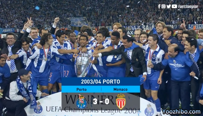 北京时间2004年05月26日,德国沙尔克体育场再次掀起蓝色的欢庆海洋,而这“蓝色欢庆”为的是穿着蓝色球衣的葡萄牙波尔图队。在这里进行的2003—2004赛季欧洲足球冠军杯决赛中,波尔图队以3比0完胜法国摩纳哥队,继1987年之后第2次问鼎冠军杯。摩纳哥队的莫伦特斯则以9个进球成为本届冠军杯的最佳射手。