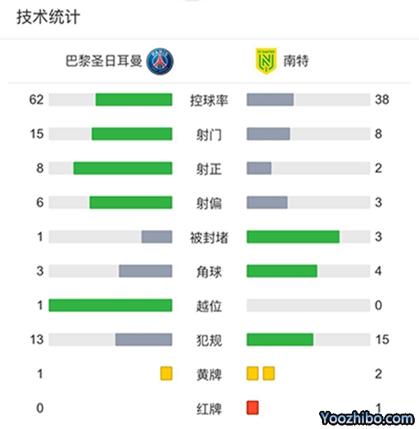 全场比赛结束,巴黎圣日耳曼4-0南特!
