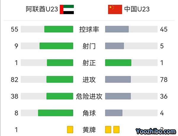 全场比赛结束,U23国足0-1不敌阿联酋。