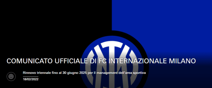 24直播网02月19日讯消息,国际米兰官方宣布和CEO马洛塔以及体育总监奥西里奥续约到2025年6月30日。