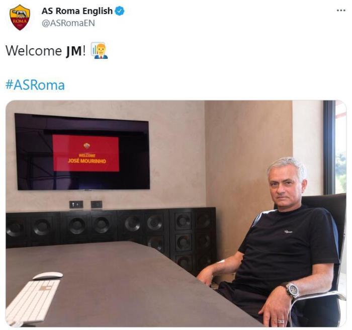 24直播网讯 罗马官推也在这个喜庆的日子里晒出了穆里尼奥坐在罗马办公室的照片,并对魔力鸟的到来表示欢迎。