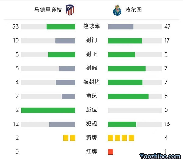 全场比赛结束,马竞2-1击败波尔图。