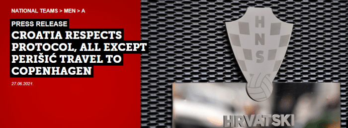 24直播网讯6月27日克罗地亚足协官方表示,全队都遵循克罗地亚和欧足联防疫规定,除了佩里西奇,其他人都不需要隔离。