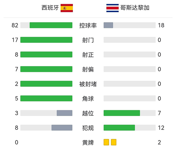全场比赛结束,西班牙7-0哥斯达黎加!