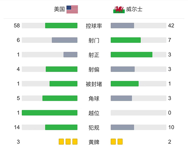 美国1-1威尔士 普利西奇助攻小维阿破门贝尔点射救主