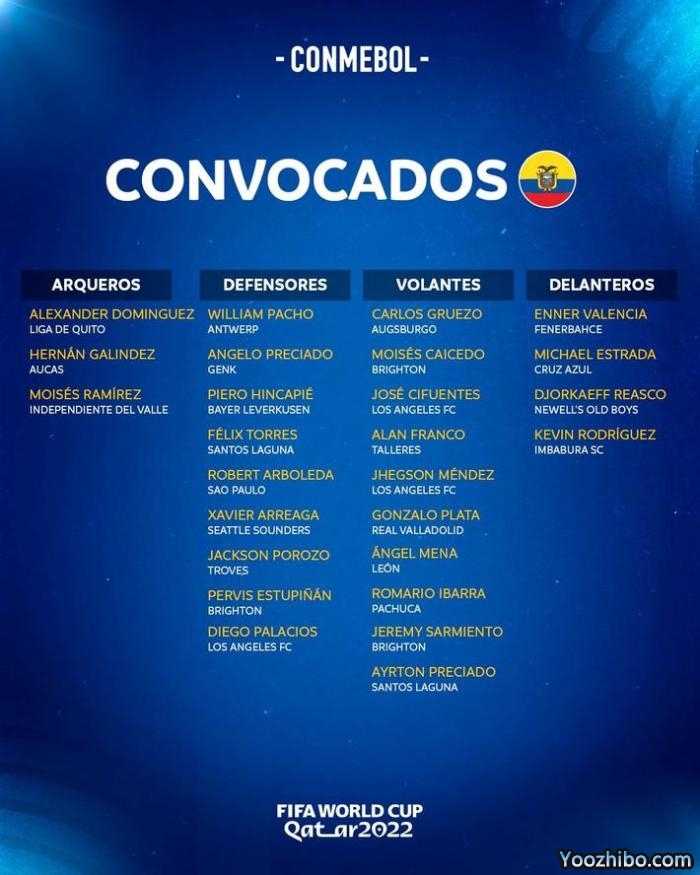 厄瓜多尔世界杯名单:凯塞多、埃斯图皮南领衔