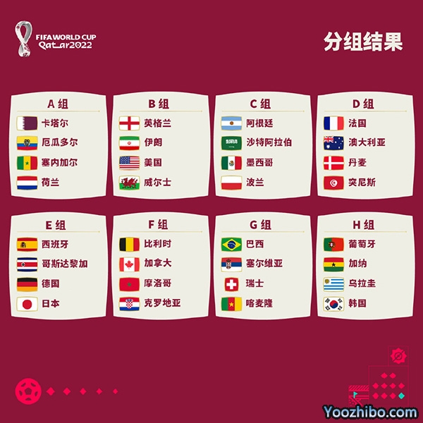 2022卡塔尔世界杯小组赛分组名单