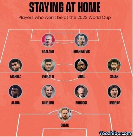 缺席世界杯最佳阵:萨拉赫哈兰德领衔