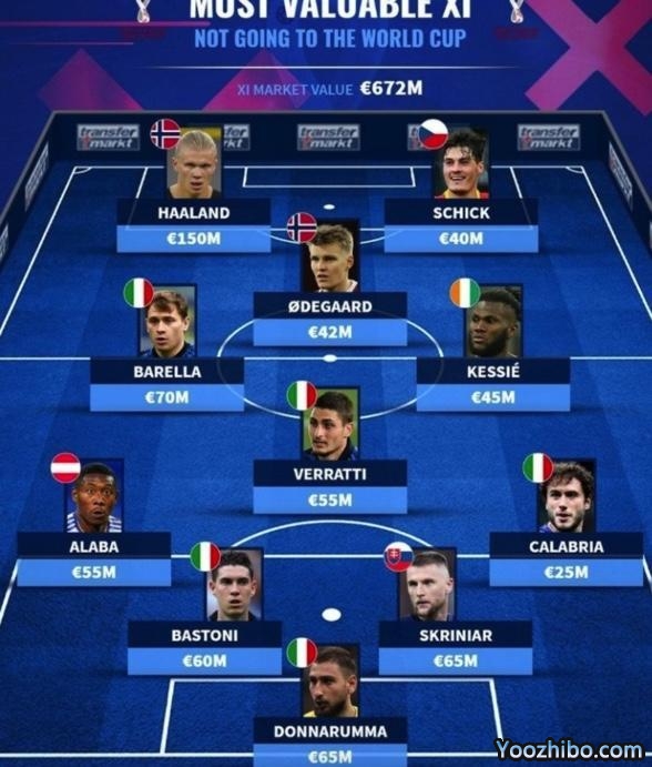 德转列无缘世界杯最贵阵:哈兰德领衔
