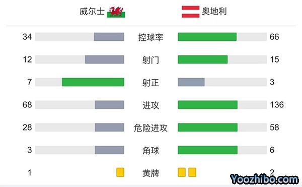 全场比赛结束,威尔士2-1战胜奥地利。