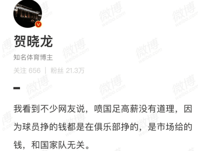 贺晓龙写道:我可以负责任地说,赢一场就发600万,不管是换算成美元、英镑还是欧元,都是世界足坛历史上从未有过的,任何国家和地区的世预赛奖金都没有这么高。