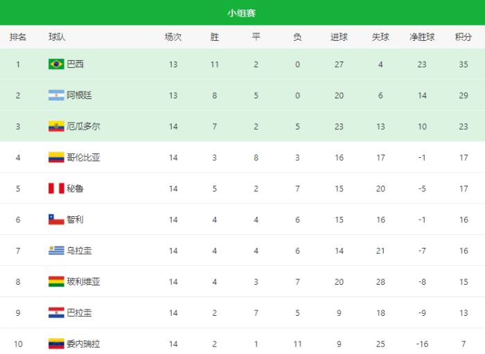 世预赛南美区排名!巴西阿根廷晋级,黑马诞生,6队抢直通门票