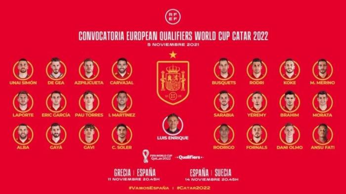 来源:24直播网11-06 12:0824直播网11月06日讯 为征战世预赛,今日,西班牙公布新一期大名单:卡瓦哈尔回归,加维、皮诺、迪亚斯入选。