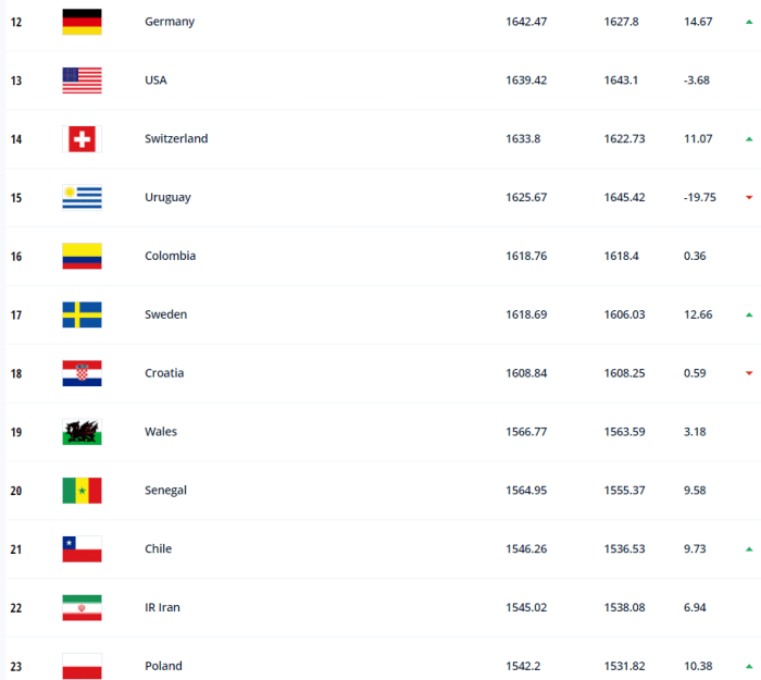 FIFA更新国家队排名(2021年10月):比利时榜首,国足排名无变化!