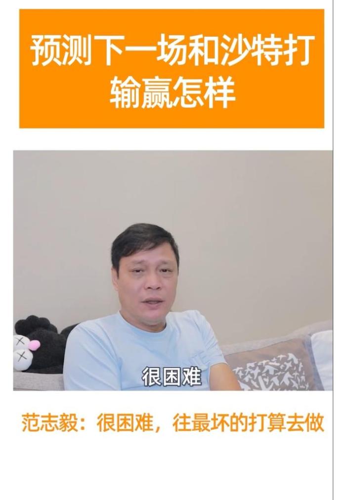 范志毅表示:“很困难,大家都往最坏的打算去做,可能要输了这个比赛。”