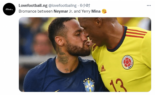 内马尔倒地时,哥伦比亚后卫米纳在他旁边耳语一番,还有挑衅的手势。这显然激怒了内马尔,他站起来后,朝米纳撅起了嘴,好像要亲吻对方,用一种独特的方式作出回击。