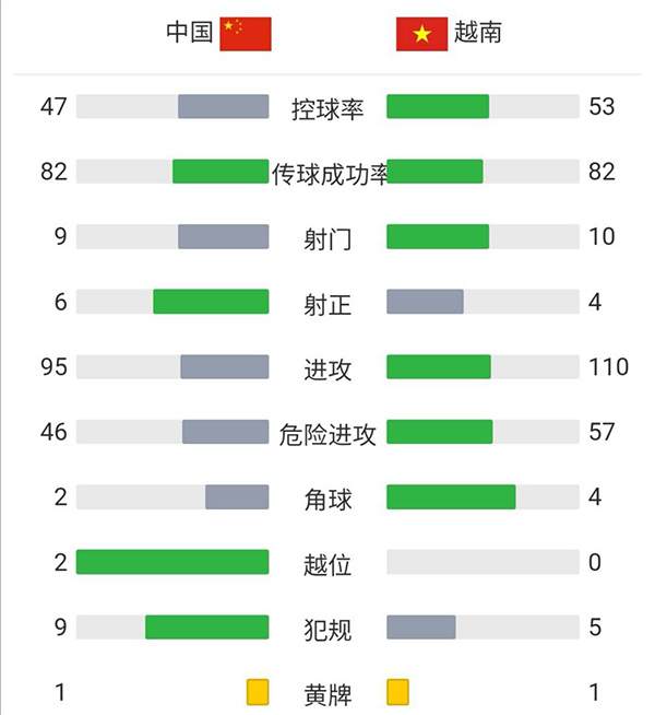 全场比赛结束,中国3-2越南。