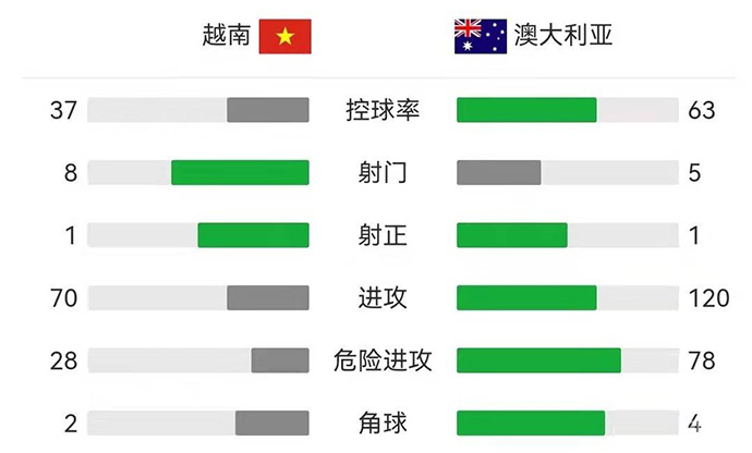第90+3分钟,越南挑传到禁区右侧,何德征前插转身起脚抽射打偏。全场比赛结束,澳大利亚1-0越南。