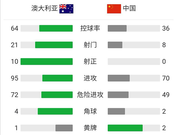 全场比赛结束,男足0-3澳大利亚。